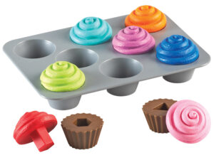 * These 8 two-part cupcakes pull apart to reveal a circle, square, triangle, rectangle, heart, hexagonal, star and diamond